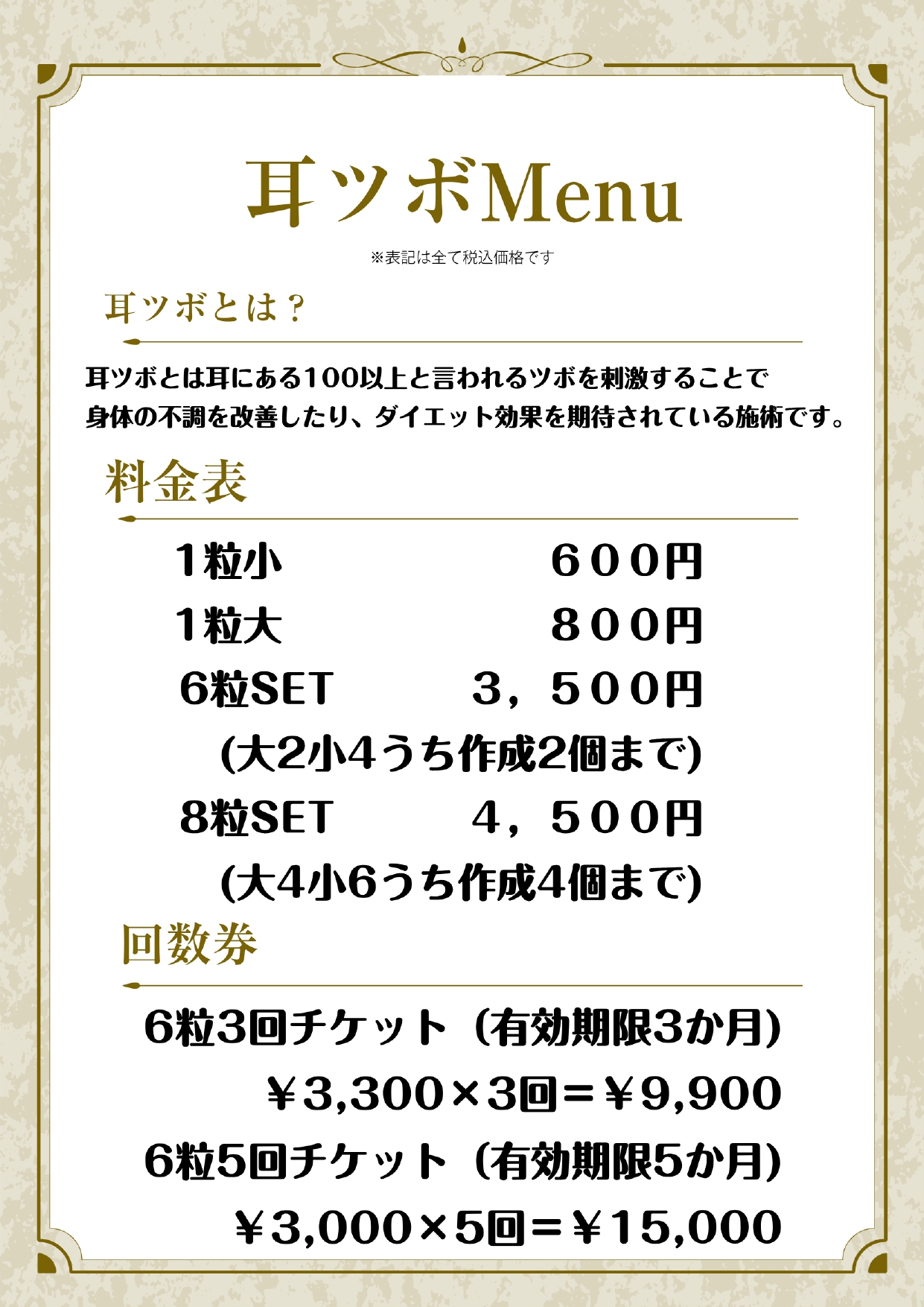 耳には100以上のツボが存在し、そこを刺激することで体の不調を整えたり、ダイエット・リラックス効果が期待できます。